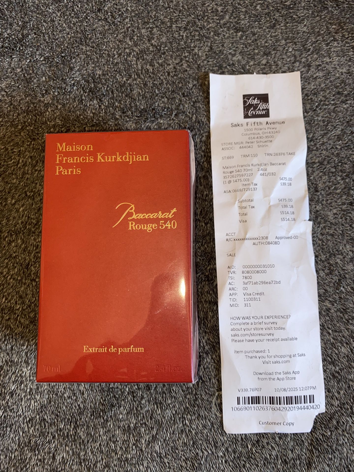 | Product Features | Brand new Baccarat Rouge 540 Sealed and w Receipt - Meet ups 24/7 Free delivery ✈️- Brand New/Sealed 🏷️- Messages are always open to offers & questions!! 📲 | ||